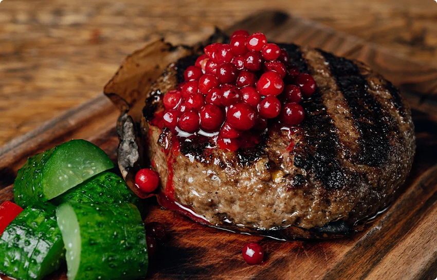 Говяжья котлета «Горыныч» с брусничным соусом